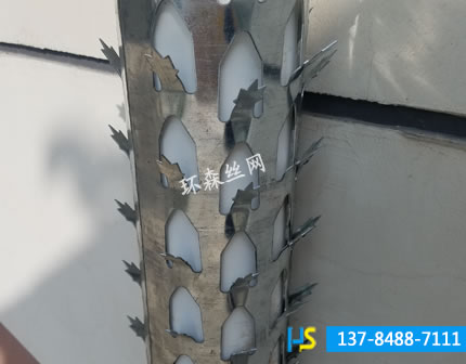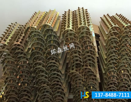 防爬刺的刺型爲皇冠型,樣式美觀,刺密度大,採(cǎi)用沖壓成型,每顆刺型都要純手工彎扭,更加增加瞭(le)刺的硬度和韌性。